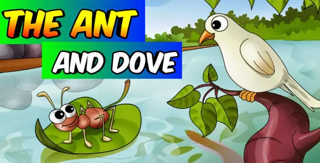 While the dove is flying around a hunter spot the dove. The hunter is ready to take a shot to the unaware of danger nearby dove. The ant happens to be near the hunter. As the hunter focus on the dove, the ant climbs on the hunter’s feet and bit him on the heel. Feeling a sting in his feet. the hunter dropped his gun. It gives the dove time to fly away quickly far from the area.